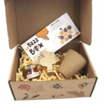 Ce coffret « Miel personnalisable » spécial pollinisateurs format 200x140x80mm renfermant une carte, un pot de miel fleur d’été, une cuillère à miel, un stick bois abeille graines de fleurs, un pot en fibre de bois PEFC ø60mm et une plaquette de tourbe.