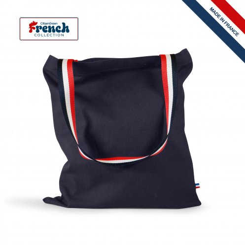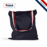 Il dispose de 2 anses longues tricolores (3 × 63 cm) et d’une puce Bleu/Blanc/Rouge, véritables symboles de la confection française. Avec son format généreux 36 × 41 cm, il est idéal pour le shopping, les déplacements ou les salons professionnels, en alliant praticité et engagement éco-responsable.